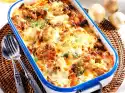 Bake in the preheated oven (electric cooker: 200 °C/ convection oven: 175 °C/ gas: level 3) for 35-40 minutes. Wash the marjoram, dab dry and pluck the leaves from the stalks. Remove the oven slippers from the oven and serve garnished with marjoram.