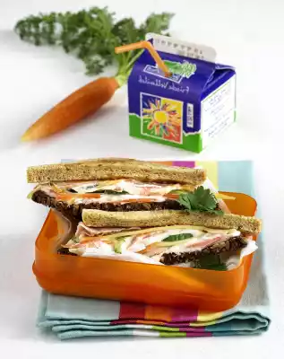 Toast bread roast. Cut slices of bread diagonally in half. Spread the cream-cheese-vegetable mixture, cucumber, ham and cheese slices on the black bread. Fold one toast slice onto each slice of bread and wrap it in parsley leaves for on the way.