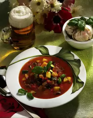 Season with salt and cayenne pepper. Deglaze with 1/2 litre cold water. Stir in tomato soup. Bring to the boil while stirring and boil for 1 minute. Refine with cream, season again.