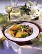 Whisk cream, 5 eggs, some salt, pepper and nutmeg with a whisk. Pour evenly over the filling, sprinkle the rest of the cheese on top. Bake in the preheated oven (electric cooker: 200 °C/ convection oven: 175 °C/ gas: level 3) for about 45 minutes. Let the finished cake rest in the mould for approx. 15 minutes. Remove from the mould and cut into pieces