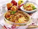 Place on the fat pan of the oven. Cook in the preheated oven (electric cooker: 200 °C/ circulating air: 175 °C/ gas: level 3) for approx. 1 1/4 hours. Peel and wash the potatoes and season with salt. Distribute around the chicken about 40 minutes before the end of the cooking time. Peel and wash the carrots and cut them in half lengthwise. Peel shallots and cut into slices. Heat 1 tablespoon of oil, fry the carrots and shallots in it. Season with salt and pepper. Add 5 tablespoons of water, cover and cook over a mild heat for 8-10 minutes.