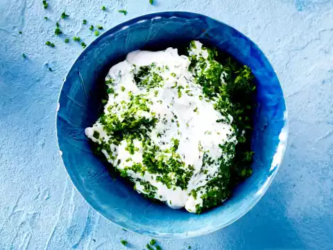 Wash the chives, shake dry, cut into fine rolls. Wash the parsley and chervil, shake dry, and finely chop the leaves from the stems.