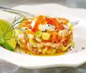 Heat 3 tablespoons of butter in portions in a coated pan (approx. 20 cm Ø). Bake 8 thin crêpes from the dough one after the other. Remove and keep warm. Arrange 2 crêpes each with 2 slices of salmon, cucumber and some honey sauce.