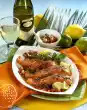 Fry the onion slices in hot frying fat. Stir in 100 ml water and stock and bring to the boil. Thicken sauce and season to taste. Serve everything