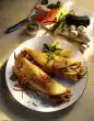 Whisk vinegar and 2 tablespoons of oil and season with salt and pepper. Cut the omelette into pieces and arrange on plates with the remaining tomatoes and rocket. Drizzle with vinegar oil. Roasted wholemeal baguette tastes good with it.
