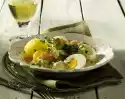 Add the green asparagus after about 4 minutes of cooking time. Peel and finely dice the onion. Wash, clean, quarter, seed and dice the tomatoes. Mix vinegar, salt, pepper, sugar, onions and tomatoes.
