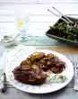 For the steaks, wash the herbs and shake dry. Pluck off needles or leaves and chop finely. Mix with lemon peel and 2 tablespoons of oil. Season with salt and pepper. Dab the meat dry and rub with the herb oil.