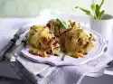 Wash the potatoes thoroughly, peel and halve if necessary. Put into a greased casserole dish