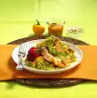 Add saffron and simmer the sauce for about 5 minutes. Stir in the sauce thickener and bring to the boil again. Season to taste with salt and pepper. Wash the herbs, dab dry and, except for a few stems for garnishing, pluck leaves from the stems.