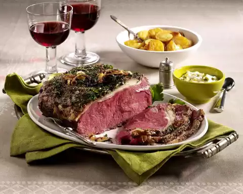 Wash the meat, dab dry. Heat 2 tablespoons of oil in a frying pan or large pan. Brown the meat thoroughly all around. Season with salt and pepper and place on the fat pan of the oven. Mix mustard and honey. Spread the roast beef with it. Cook in the preheated oven (electric cooker: 80 °C/ convection oven and gas: not suitable) for approx. 4 hours.