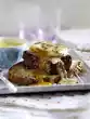 Season to taste with salt and pepper. Cut potatoes into slices. Peel onions and cut into fine rings. Heat 2 tablespoons of oil in a large frying pan, fry the onion rings in it until golden brown, remove. Heat 1 tablespoon of clarified butter in the hot pan. Heat 1 tablespoon of clarified butter in a second frying pan. Divide the potatoes between both frying pans. Fry until golden brown, turning several times, season with salt and pepper. Wash parsley, dab dry, put some aside for garnishing, chop the rest. Mix with the remaining chives. Take the roast beef out of the oven. Sprinkle with the herb mixture and spread onions on top. Garnish with parsley. Add fried potatoes and tartar sauce