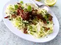 In the meantime, bring salted water to the boil in a wide pot. Spread the dough in portions on a spaetzle board. Scrape into the water and cook for about 3 minutes until the spaetzle rise to the top. Take them out with a skimmer, quench them briefly with cold water and let them drip off