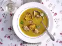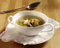 Cut out 12 small flowers from the slices of bread. Heat the oil in a pan. Fry the bread blossoms until golden brown. Arrange the soup in deep plates. Place croutons on top and garnish with parsley.