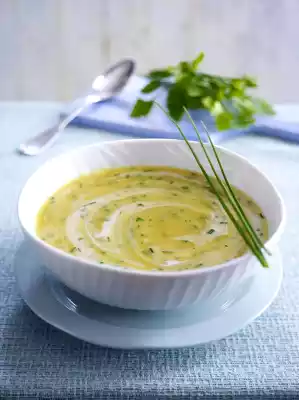 Refine with cream. Arrange the soup and garnish with chives.