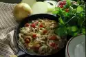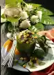 Using a zest ripper, pull thin zests from the cucumber to garnish. Peel the rest of the cucumber, cut it into small pieces and add to the herbs. Add the kefir and puree finely with a chopping stick. Season to taste with Worcester sauce and salt.