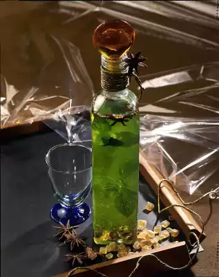 Wash mint and lemon balm leaves and dab dry. Place the star anise, sliced vanilla pod and coriander seed in a container and fill up with alcohol, close well and leave to stand at room temperature for three to four days. Shake occasionally. Bring sugar and 1/4 litre of water to the boil and simmer for 15 minutes. Add sugar syrup to the alcohol and seal well. After one week pour the liqueur through a filter bag. Pour into a clean bottle. Garnish with mint leaves, star anise and brown candy as a gift