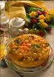Peel and chop the onion. Fry in hot oil. Simmer with tomatoes and ketchup for about 10 minutes, season to taste. Let it cool down. Cut the maties into pieces and add to the sauce. Cover and chill overnight.