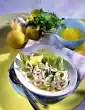 Mix all ingredients together and season again. Wash the dill and shake dry. Pluck flags from the stalks, except some for garnishing, and chop finely. Fold the dill into the salad. Arrange herring salad and garnish with the remaining dill. Garnish with caper apples if desired. Grey bread tastes good with it