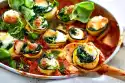 Bake in a hot oven for 45-50 minutes. Crumble the goat's cream cheese. Remove the tray and spread the cheese on top. Season with a little pepper.