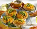 Remove the dough immediately from the baking paper and form into baskets over an inverted water glass (approx. 4-5 cm Ø). Leave to cool until the dough becomes firm. Then remove from the glass and put aside. Bake and shape the remaining dough in the same way (only bake two circles at a time, as they have to be shaped very quickly).