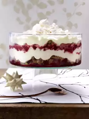 Chill the trifle and let it steep for at least 3 hours. Coarsely crumble the meringue and sprinkle over the trifle just before serving