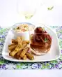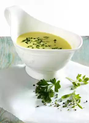 Beat the egg yolks and white wine over a hot water bath until frothy. Gradually fold in the liquid butter. Stir in herbs and season with sugar, salt and pepper.