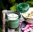 Dice butter and melt slowly in a pot. Meanwhile wash the herbs, dab dry, pluck leaves from the stems and chop. Remove butter from the stove, pour through a fine sieve and let it cool down a little.