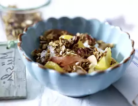 Mix yoghurt with citrus juice. Serve with crunchy nut muesli and citrus fruits.