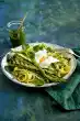 Shake out elderflower umbels and wash briefly in standing water. Put the flowers on kitchen paper and let them drip off. Bring 300 ml water to the boil, add the flowers and leave to stand for approx. 5 minutes. Cook the ravioli in a wide pot of boiling salted water for about 2 minutes. In the meantime, squeeze lemon half for the sauce. Pour the Holuder flower infusion through a fine sieve. Put margarine, almond paste, lemon juice, yeast flakes, guar gum, Kala Namak, agave syrup and elderflower infusion into a blender and mix at highest speed until the sauce is creamy. Season to taste with salt and pepper. Arrange ravioli, vegetables and sauce