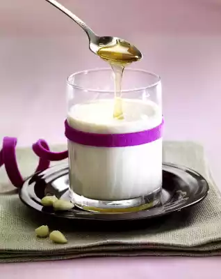 Cut the vanilla pod lengthwise and scrape out the pulp with the back of a knife. Boil up the milk, ground almonds, vanilla pod and vanilla pulp. Remove vanilla pod. Serve hot milk with a teaspoon of honey