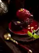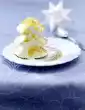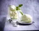 Cut parfait into balls with an ice-cream scoop. Decorate with the rest almonds and possibly sugared flowers.