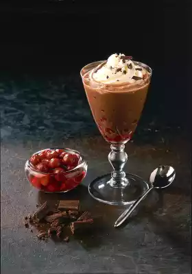Stir cocoa in 2 tablespoons of milk until smooth. Boil up the rest of the milk and sugar. Stir in the cocoa. Put the cherries and cherry brandy in a glass and pour the hot cocoa over it. Serve with a cream topping and bark chocolate.