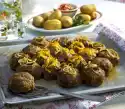 Sprinkle with fried onions. Put mustard and ketchup on the plate.