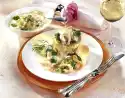 Cut the rolls deep. Put in lettuce leaves, cucumber salad and 1 fish stick each. Arrange with remoulade, ketchup, fried onions and parsley
