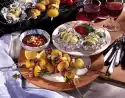 Heat the sausages in hot water. Cut the roll lengthwise. Place one sausage and a few cucumber slices in each roll. Spread with ketchup, mustard and tartar sauce and sprinkle with fried onions.