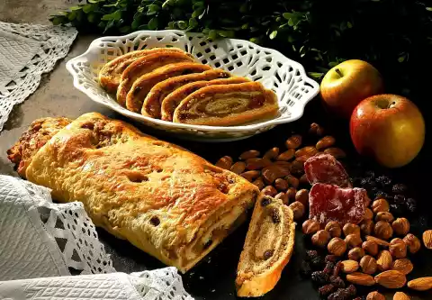 Spread the nut roll with whisked egg yolk and bake in the preheated oven (electric range: 175 °C/ gas: level 2) for 50-60 minutes. Then let it cool down on a cake rack. Serve with whipped cream as desired.