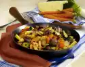 Clean, clean and halve the mushrooms. Peel and chop the onion. Cut the sausages into approx. 2 cm thick slices. Dice cucumbers.