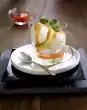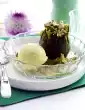 For the ice-cream, cut the vanilla pods lengthwise the day before and scrape out the pulp. Bring the cream, milk, vanilla beans, pulp and sugar to the boil, allow to cool and chill. Peel ginger and grate finely. Beat two egg yolks and 100 grams of sugar until foamy. Stir in half of the cream-milk mixture and ginger and freeze in the ice-cream maker. Remove the finished ice cream, freeze and prepare the ice cream machine for the chocolate ice cream. Chop the chocolate. Melt four tablespoons of the remaining cream-milk mixture and chocolate over a warm water bath. Stir the chocolate mixture into the cream-milk mixture. Beat two egg yolks and 100 grams of sugar until frothy. Stir in the cream-milk mixture and freeze in the ice-cream maker. For the apple pie, knead flour, 100 grams of sugar and butter. Roll out to a circle (18 centimetres in diameter) and place in a greased springform pan (18 centimetres in diameter). Wash the apple, cut out the core, cut the fruit flesh into thin slices and spread on the cake. Sprinkle with cinnamon. Bake in the preheated oven (electric cooker: 175 °C/ convection oven: 150 °C/ gas: level 2) for 45 minutes. Sort the raspberries. Sprinkle half the raspberries with a tablespoon of sugar and pass through a sieve. Let the cake rest for ten minutes, remove from the tin and cut into pieces. Form ice cream into balls with an ice cream scoop. Arrange raspberry puree, raspberries, cake and one scoop of ice cream each on plates
