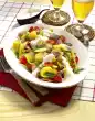 Chill for at least 1 hour. Wash the shrimps, dab dry. Heat the oil in a pan and fry the prawns for 2 minutes on each side. Core the pepperoni, wash and cut into fine rings. Wash the mint and pat dry. Put something aside for garnishing. Cut the rest into fine strips. Add half of the mint to the soup and puree with the hand mixer's cutting stick. Serve with prawns and sprinkled with mint and pepperoni.