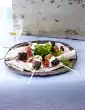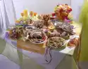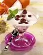 Cut into large cubes and put on skewers. Pull the mango slices through the egg white and turn them in grated coconut. Heat butter in a pan. Fry the skewers until crispy all around. Stir the mango soup and fill into cocktail bowls or dessert glasses. Place mango-coconut skewers on the glasses and decorate with mint