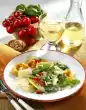 Peel and roughly dice the onion. Peel, wash and roughly dice the potatoes. Add boiling water to the peas and drain them through a sieve after about 2 minutes.