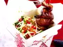 Mix everything well once again. Turn the oven up to 200 °C and continue cooking for 10-15 minutes. Wash mint, dab dry, pluck leaves and cut into fine strips. Remove the casserole from the oven and sprinkle with mint.