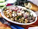 Wash the coriander, shake dry and pluck the leaves from the stalks. Chop the coriander and peanuts. Mix yoghurt and coriander. Season to taste with salt, pepper and lime juice. Mix vinegar and oil for the marinade.