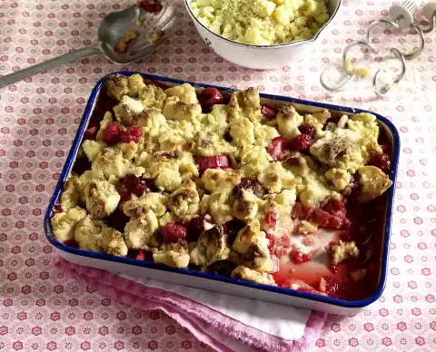 Bake Crumble in a hot oven for 35-40 minutes. Dust with some icing sugar and serve warm.