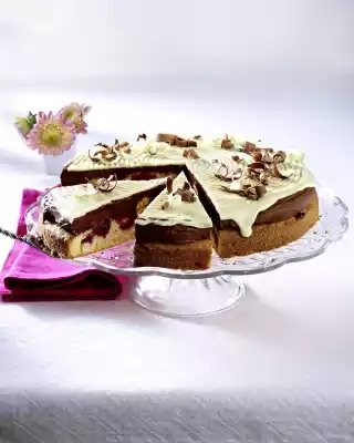 Briefly whip the chocolate cream (canache) with the whisk of the hand mixer and spread on the cake. Refrigerate for another 15-20 minutes