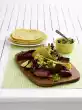 For the chocolate curls, strip off 25 g each of white and milk chocolate couverture to curls with the economy peeler. Decorate the cake with them