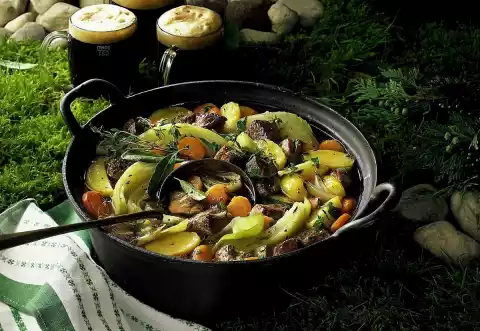 Finally, pour the stock over the stew. Braise in a closed pot at medium heat for about 1 hour. Season to taste again. Wash and finely chop the parsley. Sprinkle over the parsley before serving.