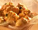Mix sauce powder with 25 g sugar. Gradually stir with at least 6 tablespoons of milk until smooth. Bring the rest of the milk to the boil and remove from the heat. Stir in the sauce powder. Bring the sauce to the boil briefly while stirring. Let the sauce cool down, stirring from time to time. Mix flour, 60 g sugar, baking powder and salt in a bowl. Add eggs, yoghurt and grappa and stir everything into a thick, viscous dough. Heat the oil. Use 2 tablespoons to cut the dough into cams and let them slide into the oil. Fry 12 doughnuts in 3-4 portions for 4-5 minutes each. Drain on kitchen paper and turn in 50 g sugar while still warm.