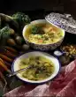 Wash the zucchini and cut into small cubes. Wash, clean and quarter the tomatoes. Remove seeds. Cut the flesh into small cubes. Drain beans and rinse with clear water. Prepare pasta in boiling salted water according to package instructions. Remove onion and boiled beef from the stock. Cut the boiled beef into cubes. Simmer the beans and zucchini in the Tafelspitz stock for about 5 minutes. Season soup with salt and pepper. Add pasta, diced tomatoes and meat and serve with pesto