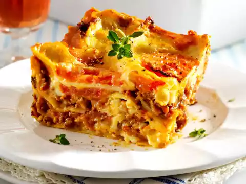 Place 3 lasagne plates on top. Spread half of the mince on top. Place 1/3 of the tomato slices on top, spread with béchamel sauce and cover with 3 lasagne sheets. Repeat the process and finish with a layer of lasagne sheets and the rest of the sauce.